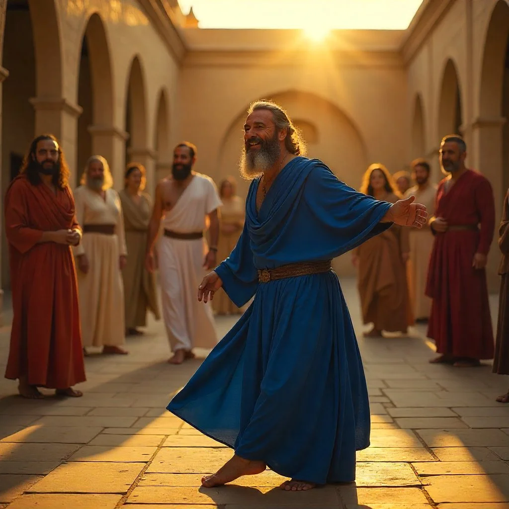King David sang and danced with joy around the Ark of the Covenant. In 2 Samuel 6:14-22, the author describes the following: “And David danced before the Lord with all his might, wearing a priestly garment. So David and all the people of Israel brought up the Ark of the Lord with shouts of joy and the blowing of rams’ horns.” Not only does David dance “with all his might,” but his singing and dancing bring honor to God through celebrating the divine presence in their midst.
